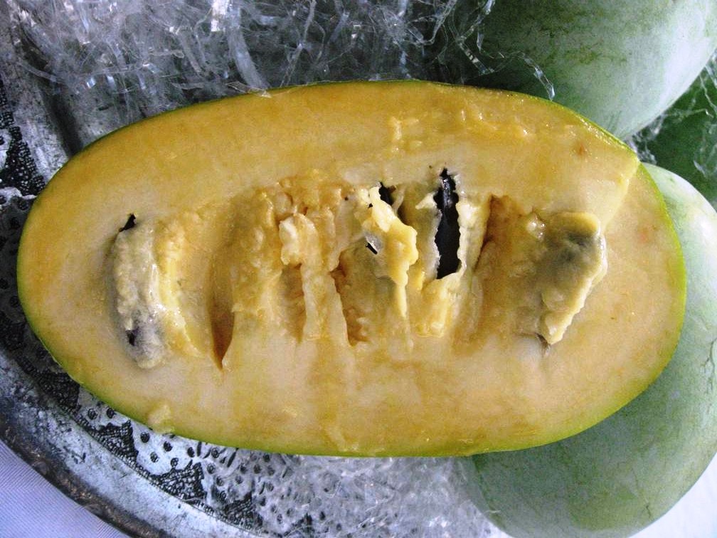 DÉLICIEUX GROS FRUITS au goût de mangue et banane, sur un très joli buisson de 3-4 mètres. Résiste sans problème à nos hivers. Il faut en planter 2 différents à 2-4 m d’écartement pour que chacun ait des fruits (sauf le Prima, autofertile). Plants greffés de 50 à 100 cm, pots hauts de 5 litres qui ont préservé la racine pivot.